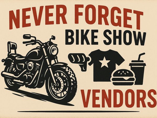 At the Never Forget Bike Show, we’re proud to showcase a variety of vendors offering everything from custom bike parts and gear to food, drinks, and memorial merchandise. Whether you're looking to upgrade your ride, grab some one-of-a-kind apparel, or just enjoy some great eats, our vendors have you covered.